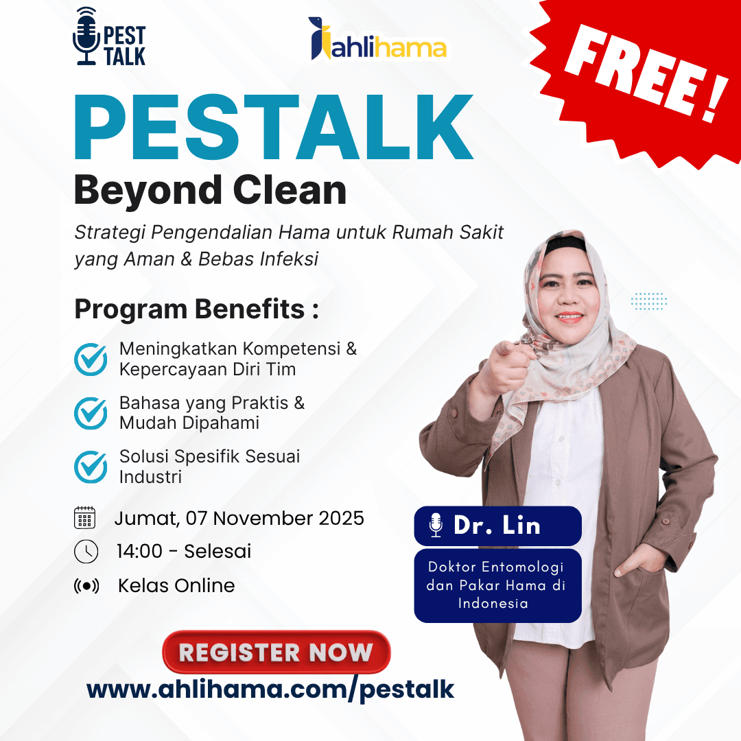 Melalui Pestalk Ahlihama: Beyond Clean, peserta akan mempelajari bagaimana menerapkan strategi pengendalian hama terpadu (Integrated Pest Management/IPM) yang efektif untuk menjaga keamanan pasien, staf medis, dan lingkungan rumah sakit secara menyeluruh.