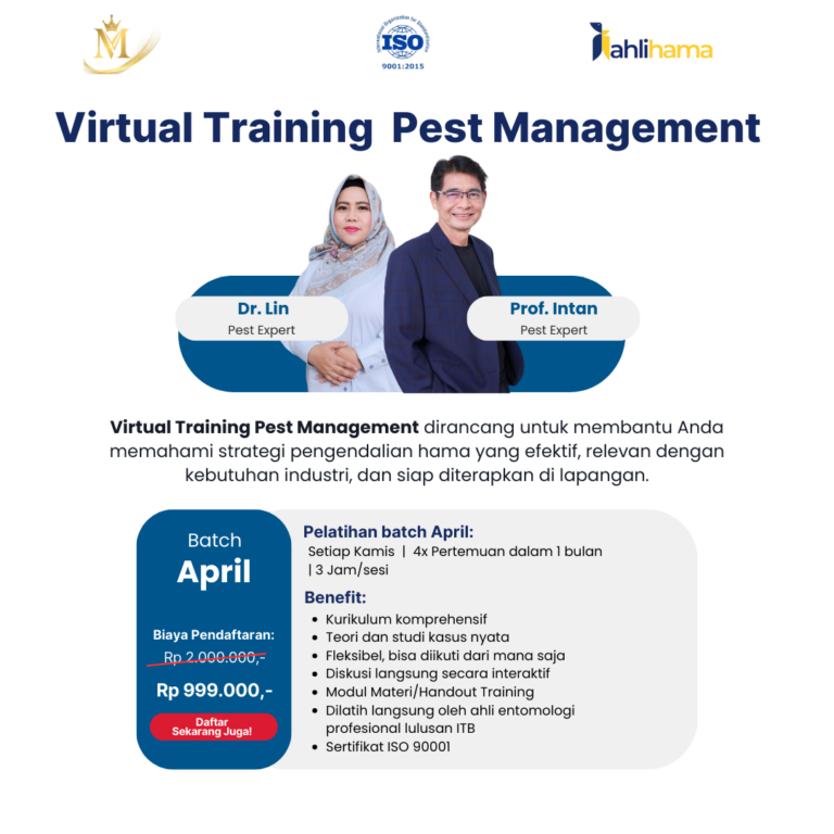 Pelatihan pengendalian hama online untuk meningkatkan kompetensi pest management secara praktis dan profesional.