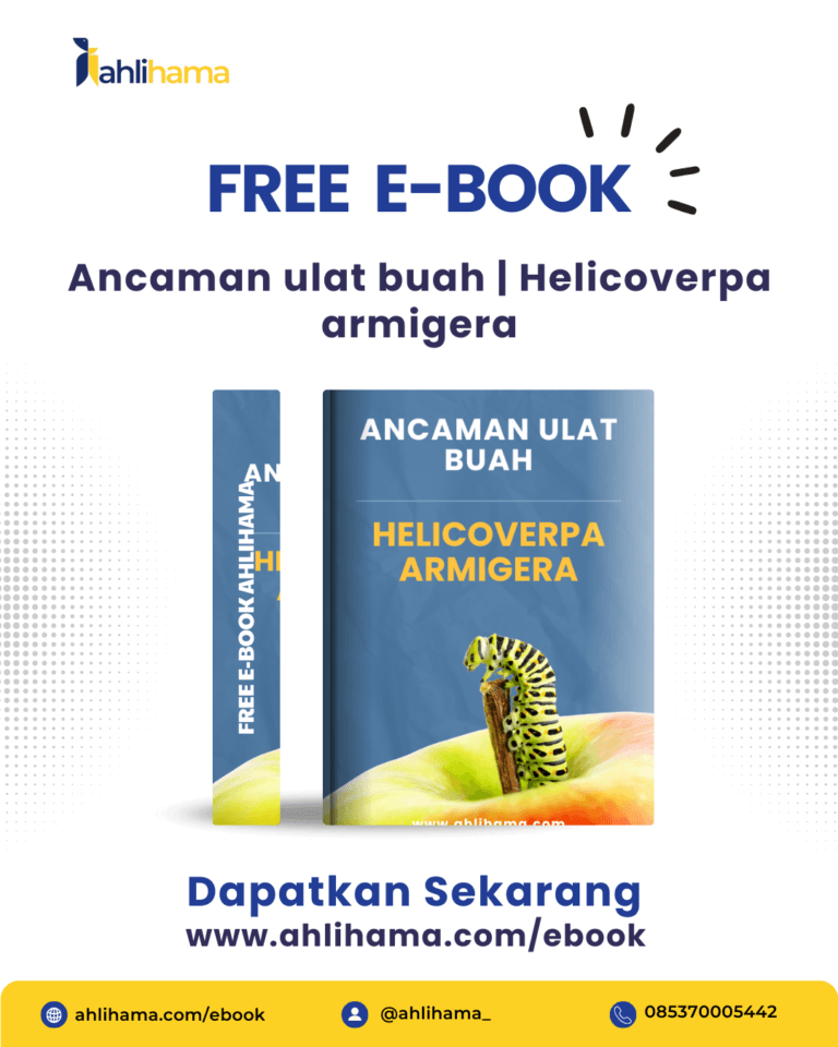Free e-book Ahli Hama membahas ancaman ulat buah Helicoverpa armigera, hama polifag perusak tanaman, serta strategi pengendaliannya.